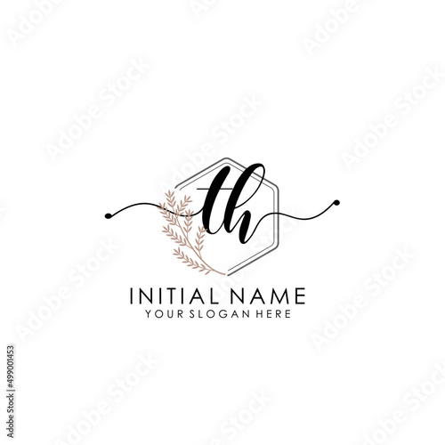 TH Luxury initial handwriting logo with flower template, logo for beauty, fashion, wedding, photography