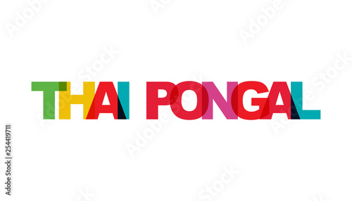 Thai Pongal, phrase overlap color no transparency. Concept of simple text for typography poster, sticker design, apparel print, greeting card or postcard. Graphic slogan isolated on white background.