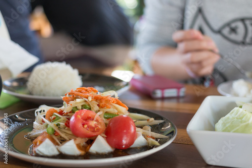 asia, asian, bean, chili, cookery, delicious, diet, dinner, food, fresh, girl, epicure, green, health, healthy, hot, lemon, lunch, papaya, plate, red, eatery, rice, salad, shrimp, sour, spicey, tasty, thai, thai food, siam, tomatoes, vegetable