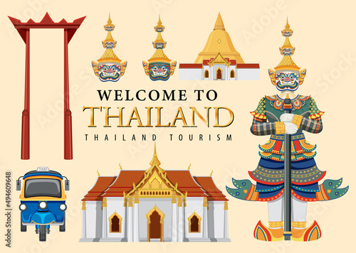 travel, asia, thai, siam, landmark, landscape, icon, logotype, object, element, signs, symbol, vacation, holiday, destination, iconic, famous, tour tourism, tour, holiday maker, background, country, southeast asia, temple, buddha, sculpture, giant, daemon, scene, nature, scenery, outside, isolated, signage, signs, blank, frame, illustration, vector, cartoon, graphic, picture, template, empty, border