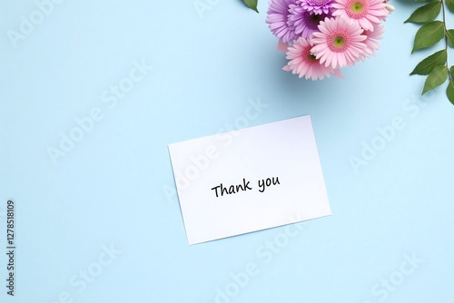 Thank you card with flowers light blue background