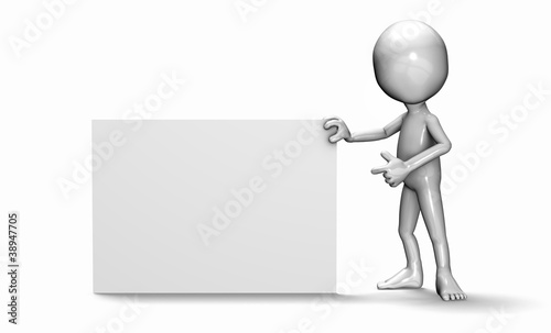 The 3d guy pointing at white blank card