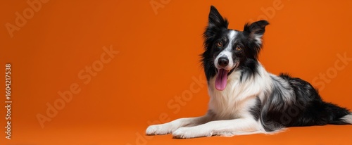 dog, pet, animal, orange, background, cute, playful, happy, furry, isolated, breed, domestic, companion, adorable, sitting, studio, portrait, canino, looking, loyal, expression, happiness, friends, lifestyle, joyful, tongue, photo, fun, training, nature, resting, vibrant, cheerful, family, banner