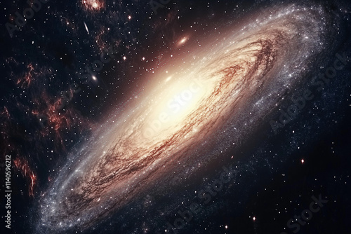 The Andromeda galaxy as seen from Earth. The long exposure time created star trails, and professional color grading was used to high