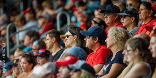 The audience cheers and watches the thrilling sports game in the stadium, displaying both support and disappointment.