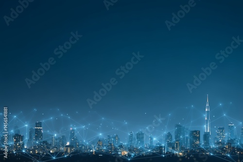The background of network technology is an abstract datum connection in a mesh of tech and blue design for computer wallpaper that depicts cyberspace science with a structure of futuristic cloud