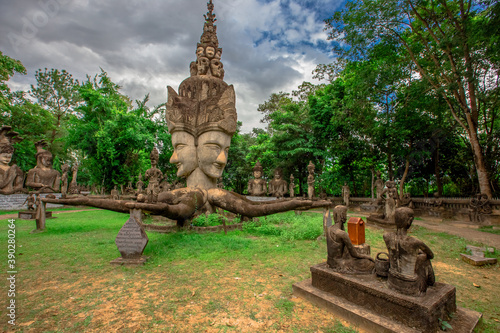The background of the important religious sites in Nong Khai Province of Thailand (Sala Keo Kou) has Buddha images, statues, sculptures and history for tourists to study while traveling.