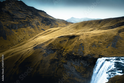 waterfall, water, nature, river, rock, park, landscape, mountain, fall, mountain, fall, cascade, waterfall, rock, national, travel, green, cliff, natural, iceland