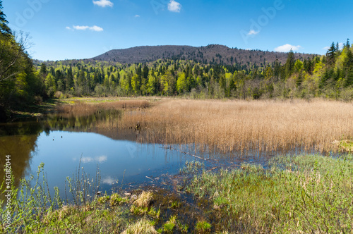 The Bobrowe Lake at the foot of the Chryszczata Mountain in the Baligród Forest District. Rabe, Bieszczady Mountains
