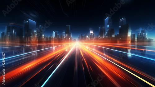 city, dynamic, light, orange, night, blue, beam of light, speed, architecture, tower block, modern, cool, light, time-lapse, business, simple, background, illustration, abstract, art, material, advertising, theme, decoration