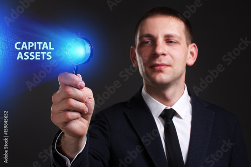 The concept of business, technology, the Internet and the network. A young entrepreneur working on a virtual screen of the future and sees the inscription: Capital assets