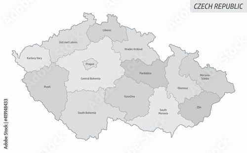 The Czech Republic isolated map divided in regions with labels