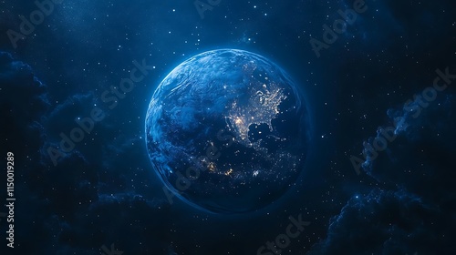 The Earth in space a blue night sky with stars