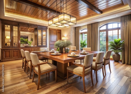 dining, room, expansive, natural, furniture, warm, lighting, elegant, table, setting, decor, luxurious, sophisticated, refined, opulent, roomy, airy, bright, inviting, intimate, comfortable, luxury, upscale, high-end, decorative, ornate, intricate, minimalist, contemporary, stylish, fashionable, ambient, soft, candlelight, dinner