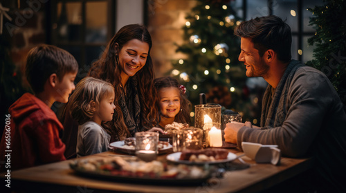 christmas, family, new year, children, dinner, indoor, lifestyle, person, eating, meal, food, man, celebration, table, together, smiling, home, woman, holiday, christmas tree, happy, christmas, adult, cheerful, festive, party, leisure, friends, evening, celebrate, gathering, tradition, happiness, young, beautiful, bonding, feast, togetherness, dining room, merry, concept, dining table, traditional, father, joy, mother, children, love