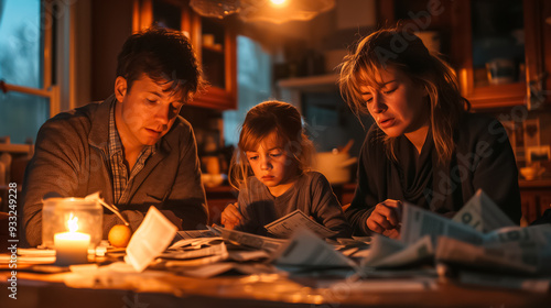 The family looks at the utility bills. Despair and depression. Unemployment, crisis, inflation. Unpaid utilities. Generation AI