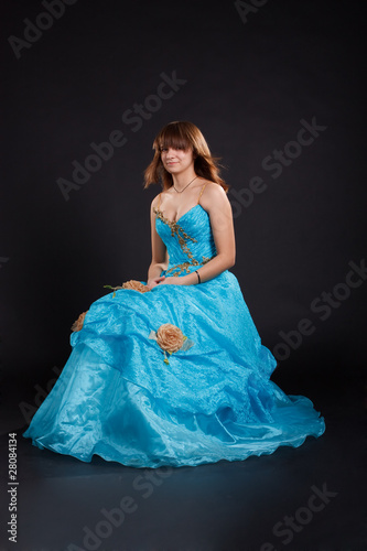 The girl in the long blue dress