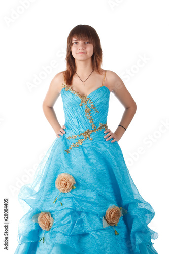 The girl in the long blue dress