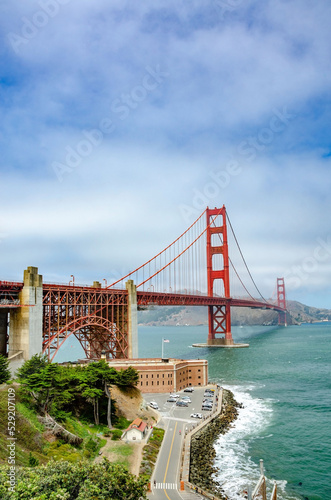 The Golden Gate Bridge in San Francisco, California is an iconic landmark and tourist attraction.