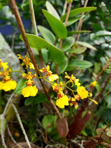 The golden shower orchid (oncidium) is blooming, beautiful yellow in color