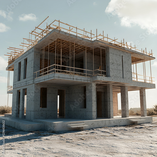 The house construction is still incomplete, but it is already half-built.