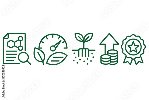 The icons of ESG finance are combining wave, dial, fork, arrow, and star