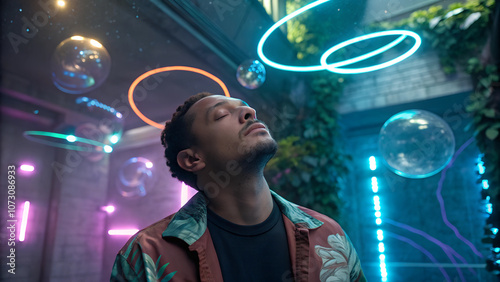 The image of a person depicted with their eyes closed serves as a metaphor for the concept of mental exploration in the field of science fiction.