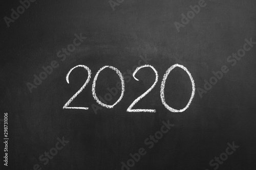 The inscription 2020 on a chalkboard