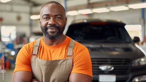 smiling, auto, mechanic, adult, man, camera, posing, repair shop, tool, work, attire, confident, smile, blue, collar, skilled, men at work, mechanical, expertise, automotive, industry, professional, wrench, engine, uniform, shop, workshop, labor, craftsmanship, repair, service, cheerful, friendly, trustworthy, experienced, hard-working, dedicated, labourer, maintenance, car, vehicle, horizontal, portrait, competence, afro, african american, black