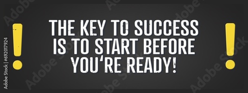 The key to success is to start before you're ready! A blackboard with white text. Illustration with grunge text style.
