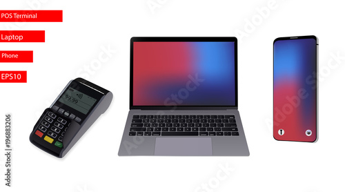 The laptop, phone, POS Terminal on a white background. Vector illustration.EPS10