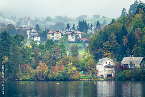 The magical atmosphere of Lake Bled in autumn. Among boats and mystical charm. Slovenia