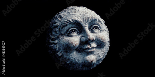 the moon with a friendly human face illustration – ideal for children’s book covers, bedtime story illustrations, fantasy posters, or creative educational materials
