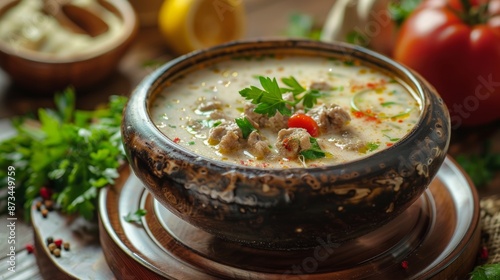 The national cuisine of Turkey. Wedding soup.