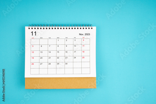 2023, november, blue, autumn, blank, business, calendar, celebration, day, deadline, design, desk, desk calendar, desktop pc, diary, event, horizontal, indoor, journey, meeting, month, new, no people, office, organisation, page, paper, photo, reminder, season, technology, siam, time, travel, week, white color
