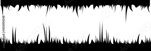 The organic shapes at the top and bottom edges of the image give it a natural and slightly abstract feel. The silhouetted lines of the grass create an interesting visual texture in the background.