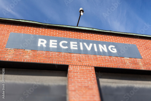 trading, building, brick wall, loading, information, no people, angle, warehouse, us, signs, industrial building, entrance, doorway, door, wall, outdoors, day, business, transportation