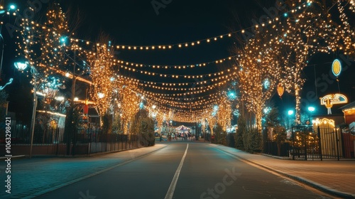 The road to the amusement park, beautiful lights.