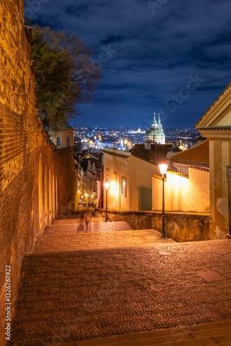 prague, castle, staircase, night, light, skyline, illumination, cobbled, architecture, historic, city, travel, europa, czechia, scenery, tour tourism, street, view, illuminated, building, culture, landscape, evening, landmark, step, nightscape, beauty, peaceful, paseo, shadow, urban, heritage, tradition, sightseeing, climb, adventure, explore, serene, picturesque, romantic, journey, alley, winding, old, town, charme, nocturnal, visual, atmospheric, destination