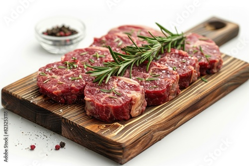 The steak on the wooden board