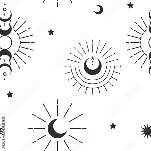 the sun and moon, the beauty of the eastern night. traditional folk spiritual elements. space objects. Vector graphics