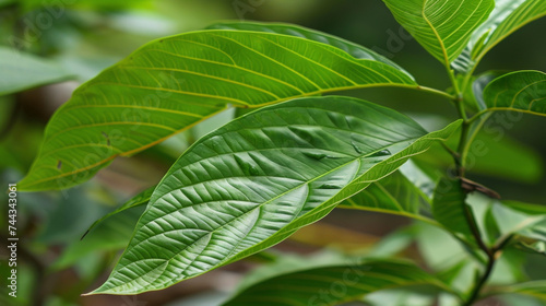 The texture of an avocado leaf with its waxy surface and prominent s indicating a strong and healthy plant that is wellnourished.