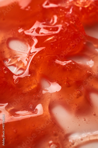 The texture of the red transparent cosmetic gel. Abstract background