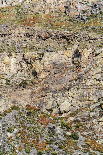The texture of the rocky slope of a mountain gorge. Russia, Altai Republic, Ulagansky District, Chulyshman Valley