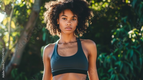 The woman in workout attire, like a sports bra and leggings, emphasizing her intention to get a good sweat session