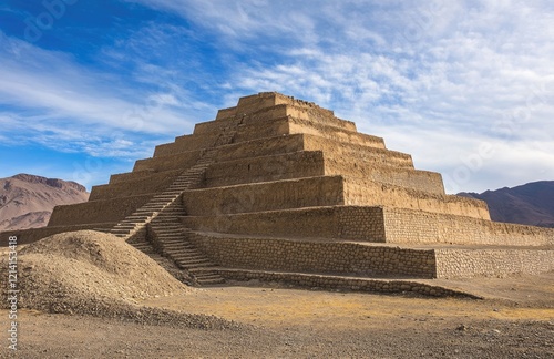The Ziggurat of Culyocca in the City, first building built by Incan people made from mud brick and bricks, a large stone wall structure