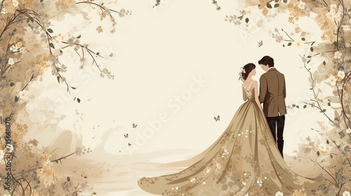 wedding, bride, couple, groom, love, dress, woman, marriage, vector, cake, illustration, silhouette, married, wife, romance, ceremony, happiness, celebration, fashion, husband, people, flower, veil, invitation, bridal