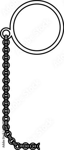 Thin contour line of round monocle on decorative chain. Eye protection accessory liner icon. Health and vision protection. Simple black and white vector isolated on white background