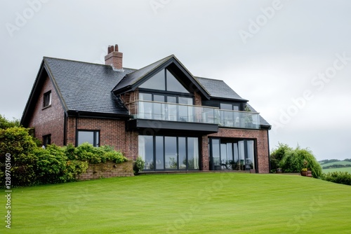 modern, home, hillside, glasses, window, green, lawn, architecture, nature, cloudy, day, contemporary, design, landscape, residential, property, space, tranquil, environment, relaxing, atmosphere, scenic, view, beautiful, house, rural, living, natural, surrounding, brick, exterior, landscaped, garden, large, balcony, peaceful, retreat, stylish, construction, scenery, area, countryside, comfortable, aesthetic, attracted, luxury, innovative, family