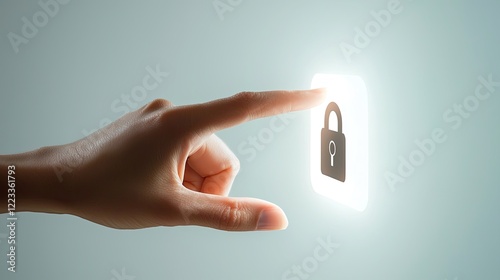 This image showcases a hand reaching towards a virtual lock icon, symbolizing the importance of digital security in modern technology and online environments.